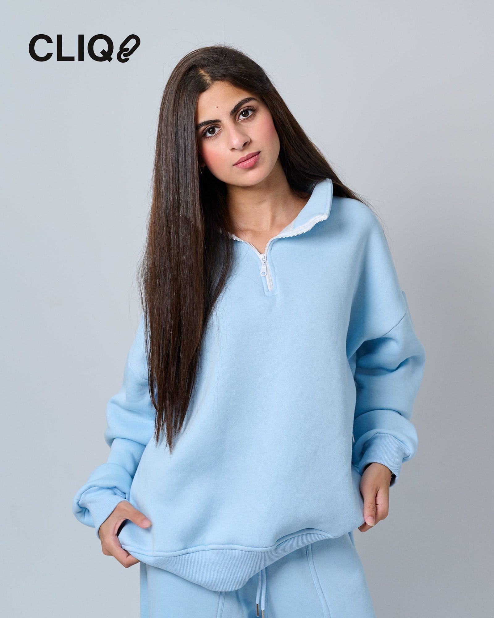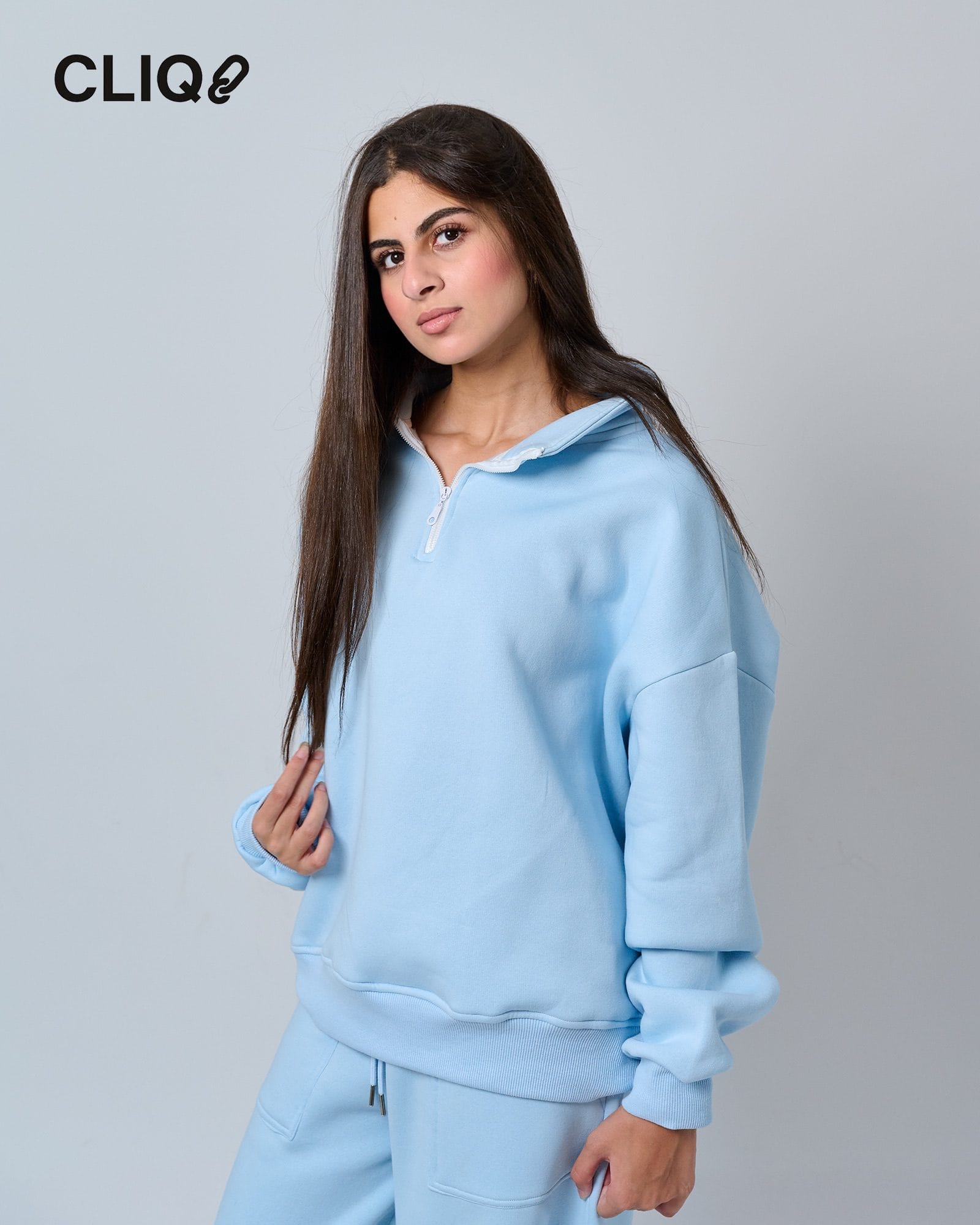 Half-Zip oversized sweatshirt and wide-leg sweatpants